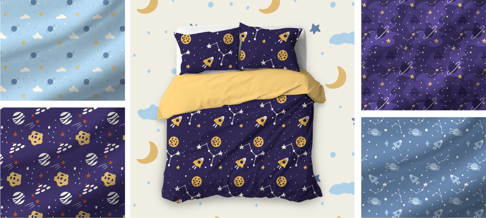 Sweet Dream Starship Pattern — a dreamy design with a starship flying through dark skies and sparkling stars. Perfect for kids’ fabrics, bedding, and creative projects.