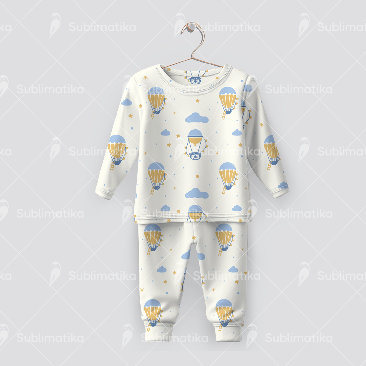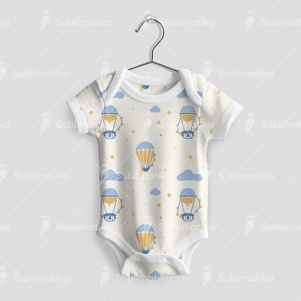 Airborne Wonders Pattern — a whimsical design featuring large hot air balloons with baskets floating through soft clouds and blue skies. Perfect for kids’ fabrics, bedding, and creative projects, adding a dreamy and playful touch.