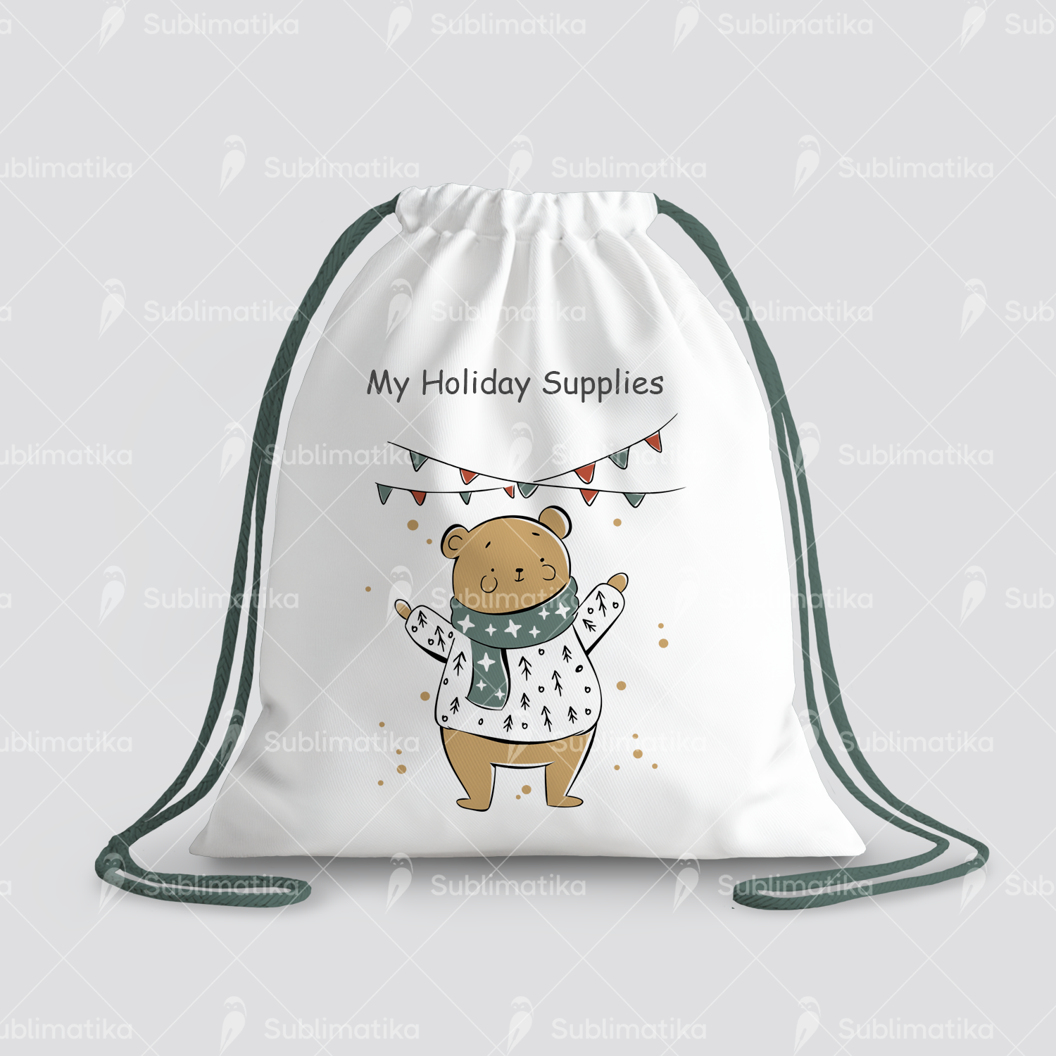 Bear’s Winter Day features a cute bear enjoying a snowy winter scene, surrounded by snowflakes and cozy decorations. Perfect for children’s textiles, holiday cards, and wrapping paper. Pairs beautifully with patterns and other prints from the same collection for a harmonious winter set.