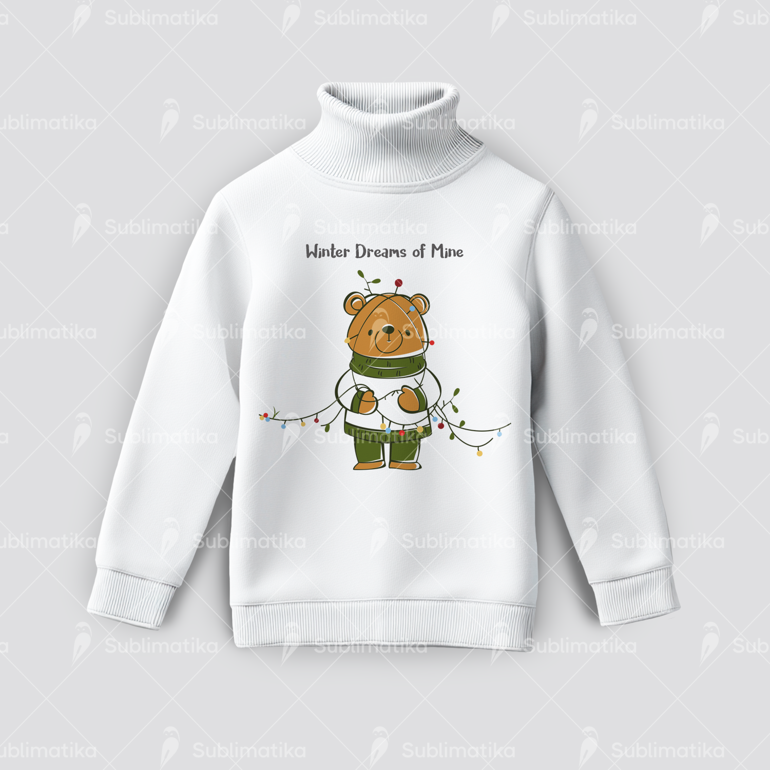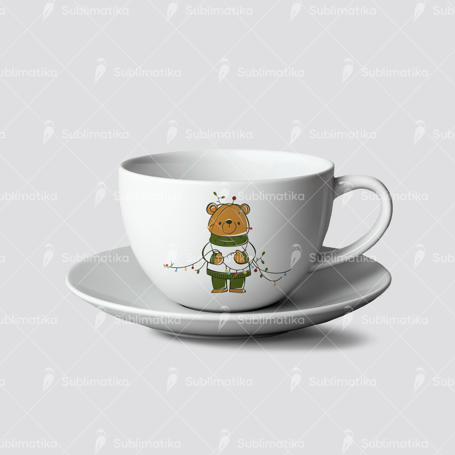 Bear with Garland features a cute bear wrapped in a string of festive holiday lights, creating a cozy and joyful winter atmosphere. Perfect for children’s textiles, holiday cards, wrapping paper, and seasonal décor. Pairs beautifully with other prints and patterns from the same holiday collection for a harmonious festive set.