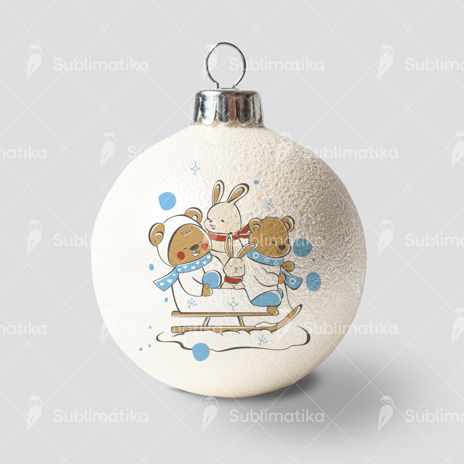 Christmas print featuring a cute bunny and squirrel decorating a festive tree. Perfect for holiday textiles, gift wrap, and seasonal designs. Coordinates beautifully with other patterns in the collection.