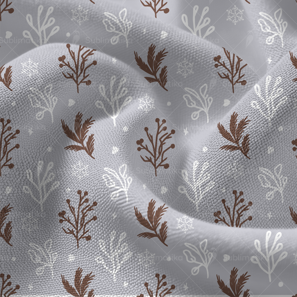 Charming winter pattern with a cute rabbit among frosty leaves and flowers. Soft pastel colors create a calm, cozy mood — perfect for fabrics, kidswear, and holiday prints.