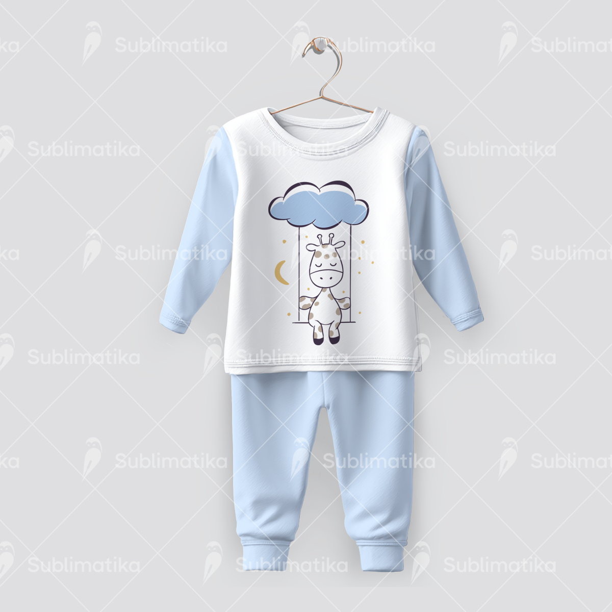 A charming giraffe swinging high in the sky — a delightful digital print for sublimation. Perfect for baby clothes, mugs, pillows, posters, blankets, and more