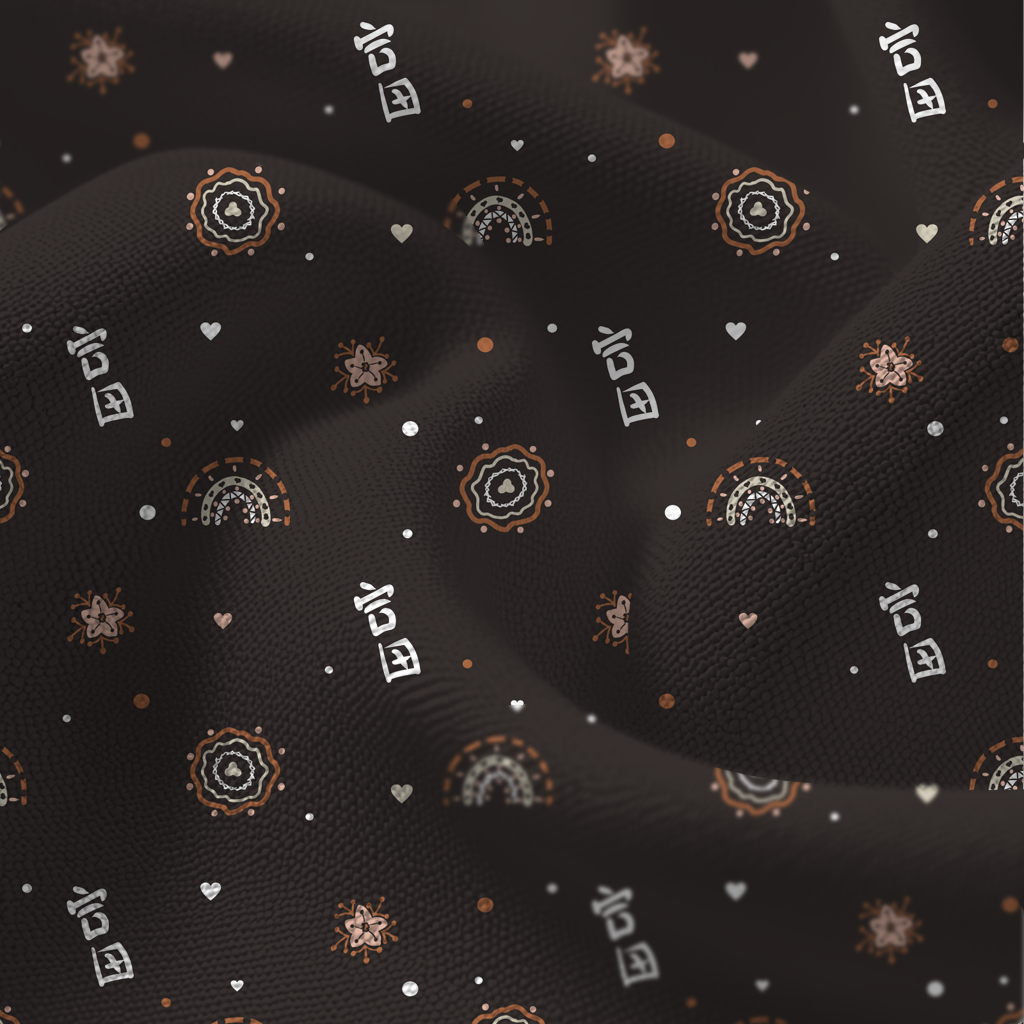 Lovebow Pattern – a vibrant, romantic design featuring colorful rainbow arches, hearts, and playful love symbols. Perfect for textiles, stationery, scrapbooking, and creative projects.