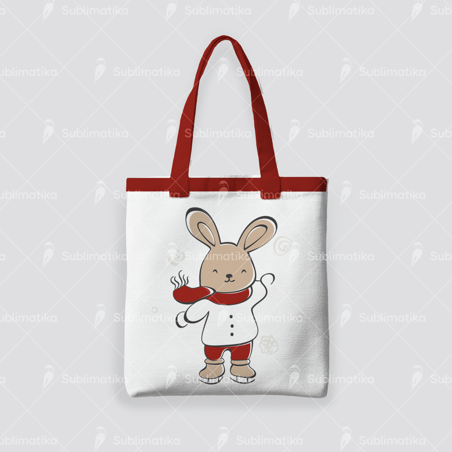 Skating Bunny — a cute winter illustration of a bunny gliding on ice, perfect for kids’ apparel, festive textiles, and cheerful seasonal designs.