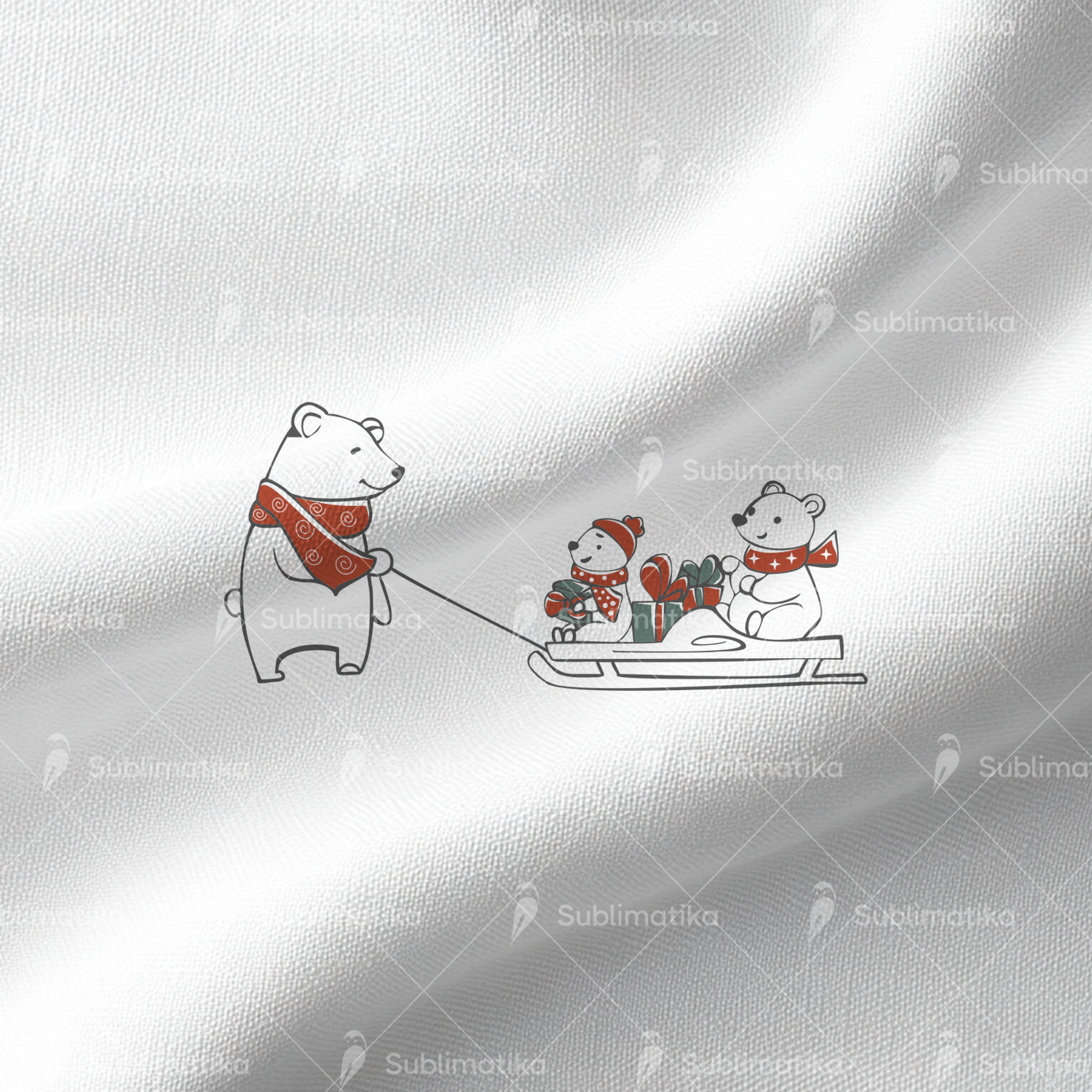 Celebrate the magic of winter holidays with Sleigh of Joy: Bear Family. This delightful vector print shows a bear family riding joyfully on a sleigh filled with gifts, surrounded by falling snow and festive decorations. Perfect for children’s textiles, holiday cards, wrapping paper, and nursery decor, it captures the warmth, fun, and cozy spirit of Christmas.